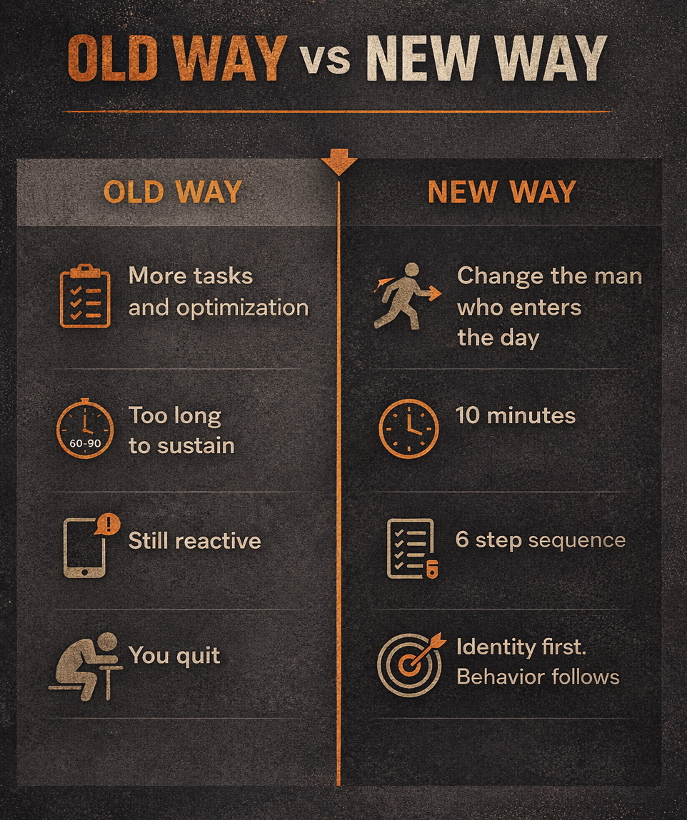 Most men already spend ten minutes or more scrolling and reacting. Swap that for ten minutes of control.