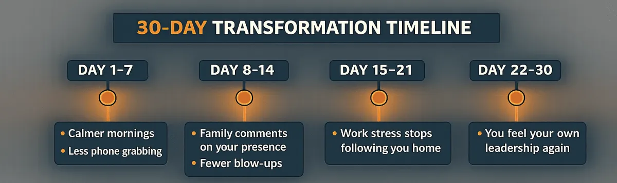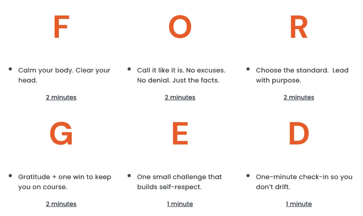 6:30am → 10-min FORGED ritual → Present with family → Leave grounded → Handle pressure calmly → Better conversations at night → Sleep calmer